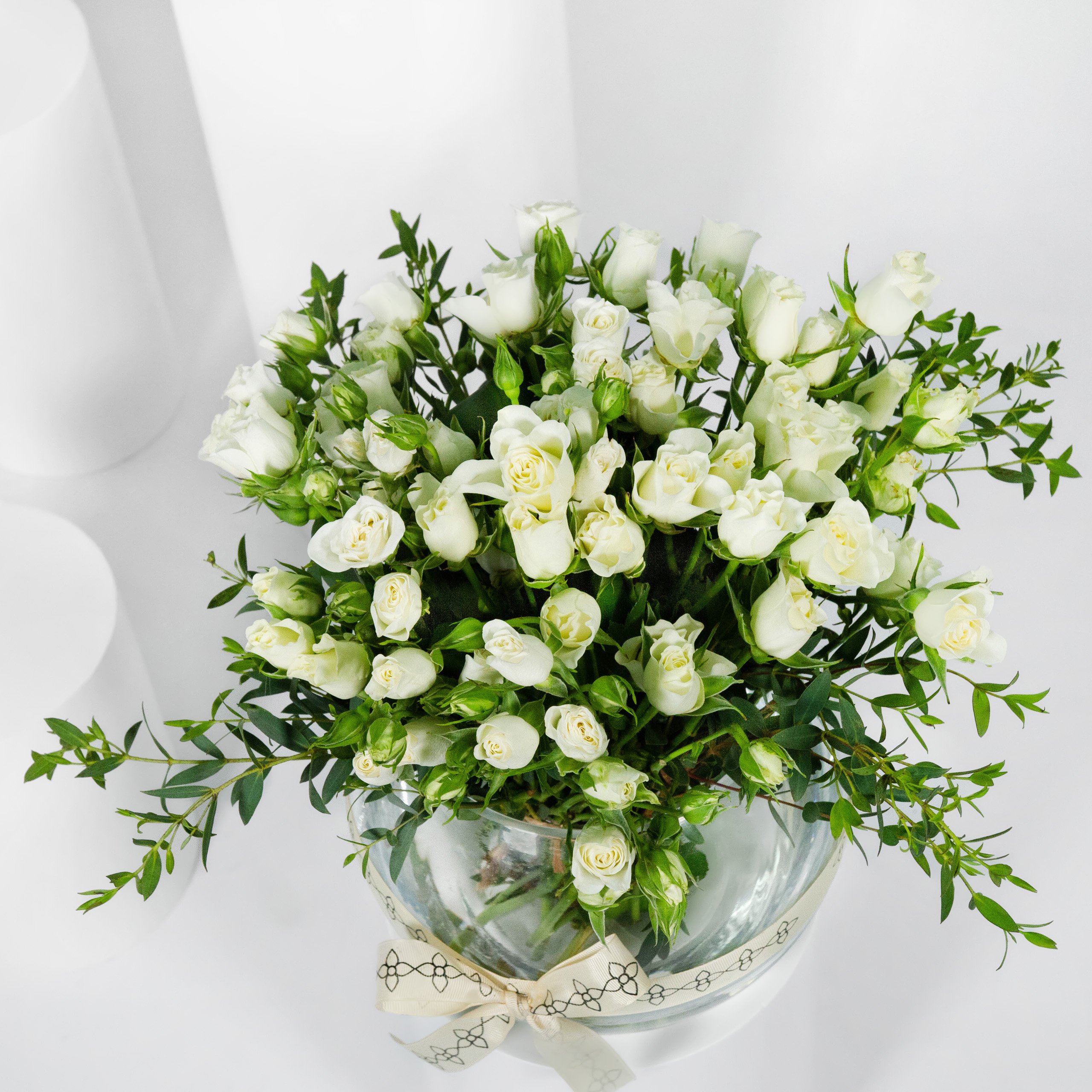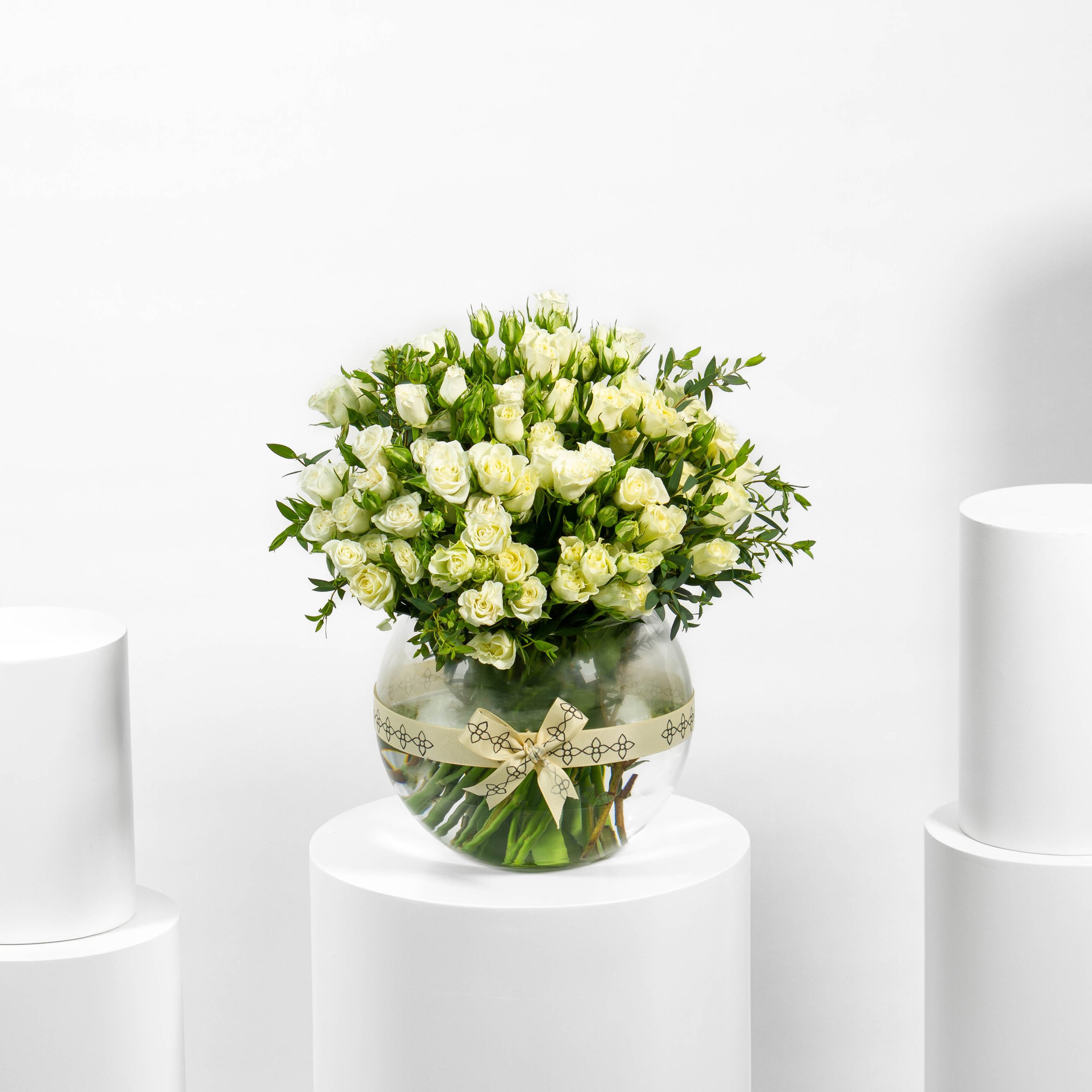 الباقة تنسجم في تصميمها البسيط والراقي، حيث تُقدَّم في فازة دائرية أنيقة تضيف لمسة من الجمال العصري. تحتوي الباقة على 20 غصنًا من زهرة البيبي رو الابيض، التي تتميز بنعومتها ورقتها، مما يضفي إحساسًا بالهدوء والنقاء. هذا التنسيق المثالي يعكس بساطة ساحرة تجعل الباقة خيارًا مميزًا للمناسبات أو لتزيين أي مساحة بأسلوب أنيق وهادئ.